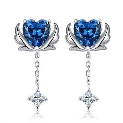 Deze gesimuleerde blauwe saffieroorknopjes hebben een liefdeshartvorm waardoor je je rijk voelt. De Cubic Zirconia 7,5 mm 7,5 mm heeft een 2 ct hartgeslepen, hoogwaardige gesimuleerde blauwe saffier. De gesimuleerde daimaont bungelt eronder. Gemaakt van 92,5% puur zilver Design Wings en geleverd met een fijne zilveren ketting van 45 cm.