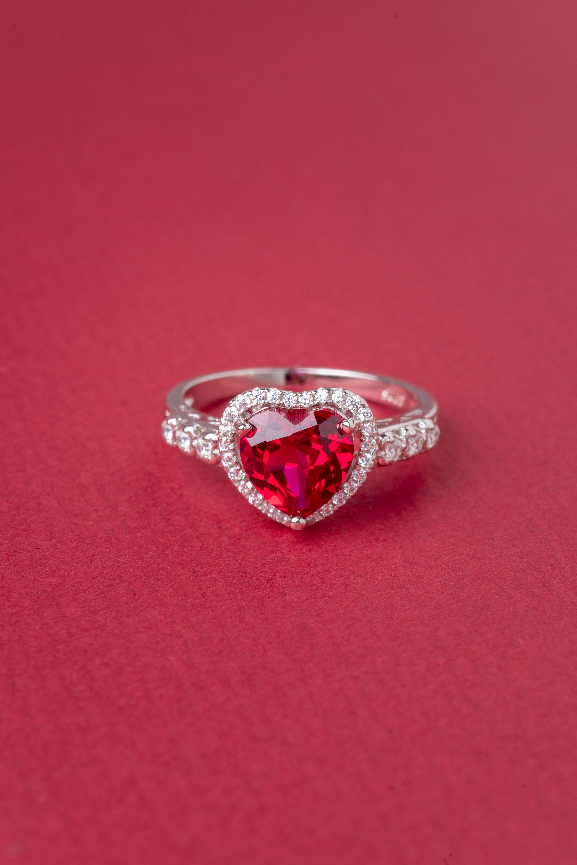 Geweldig ontwerp: deze prachtige Ruby Heart Ring is ontworpen door zeer bekwame topontwerpers en fijn vervaardigd door ervaren edelsteenexperts en edelmetaalsmeden; het prachtige zuiver witte fijne 925 sterling zilver is het edelmetaal bij uitstek vanwege zijn geweldige glans en zuiverheid.