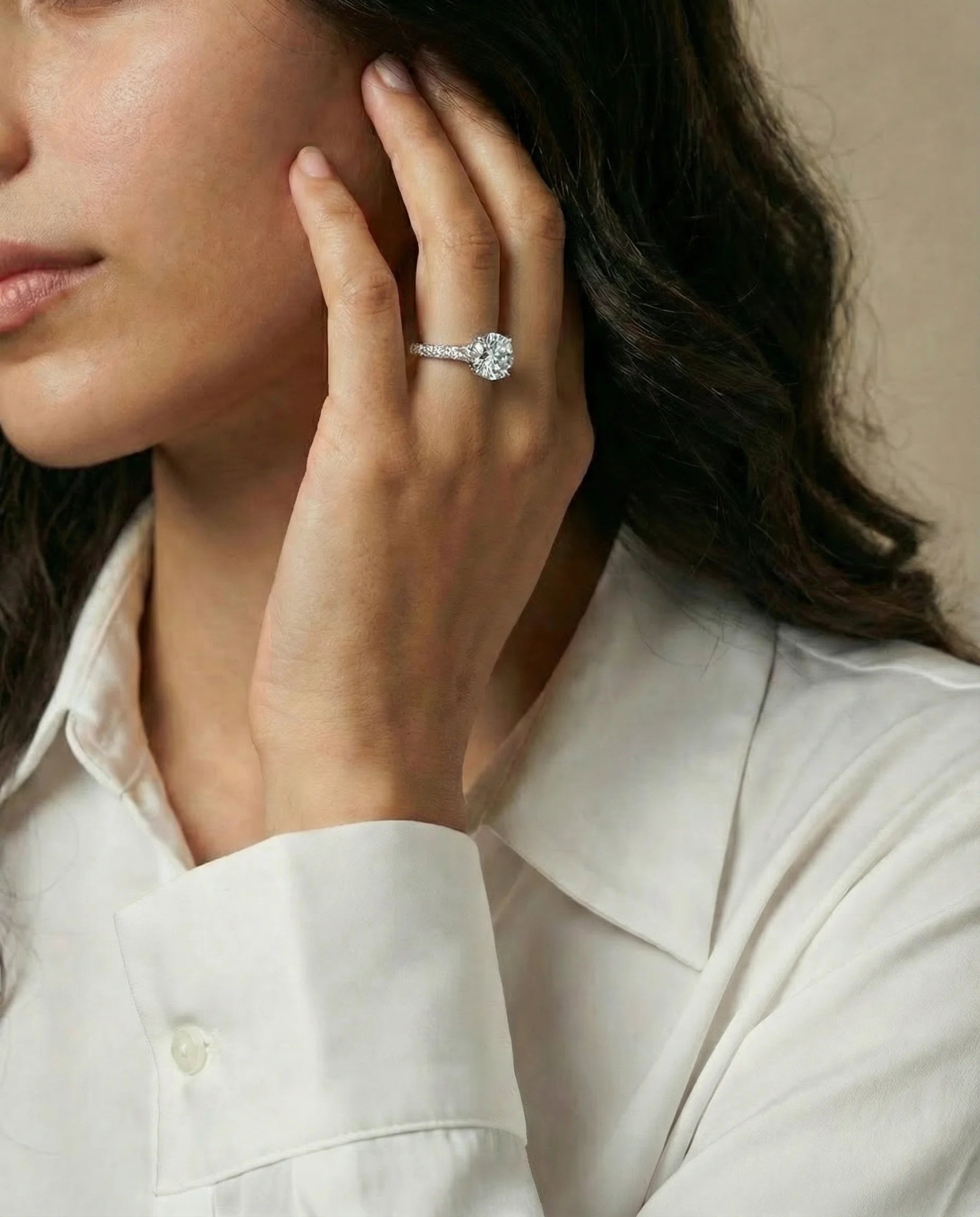 Top Quality Gem: This Simulated Diamond outperforms the visual quality of natural diamonds on every universal 4C’s grading aspect: Colour, Clarity, Cut and Carat; its colour has the highest performance of D colourless, its great clarity is VVS and its perfect cut results in high brilliance and reflection.