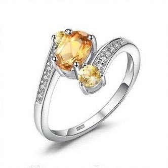 Description: This Citrine three Stone Ring is a unique Citrine and sumulated Diamonds Ring which is Suitable for Your Everyday Wear Captivating Citrine Ring holds in total Yellow 0.8 carat Oval Cut Natural Citrine stones and Simulated Diamonds. The Sterling Silver Citrine Ring had a fine 92,5% Pure Silver band.