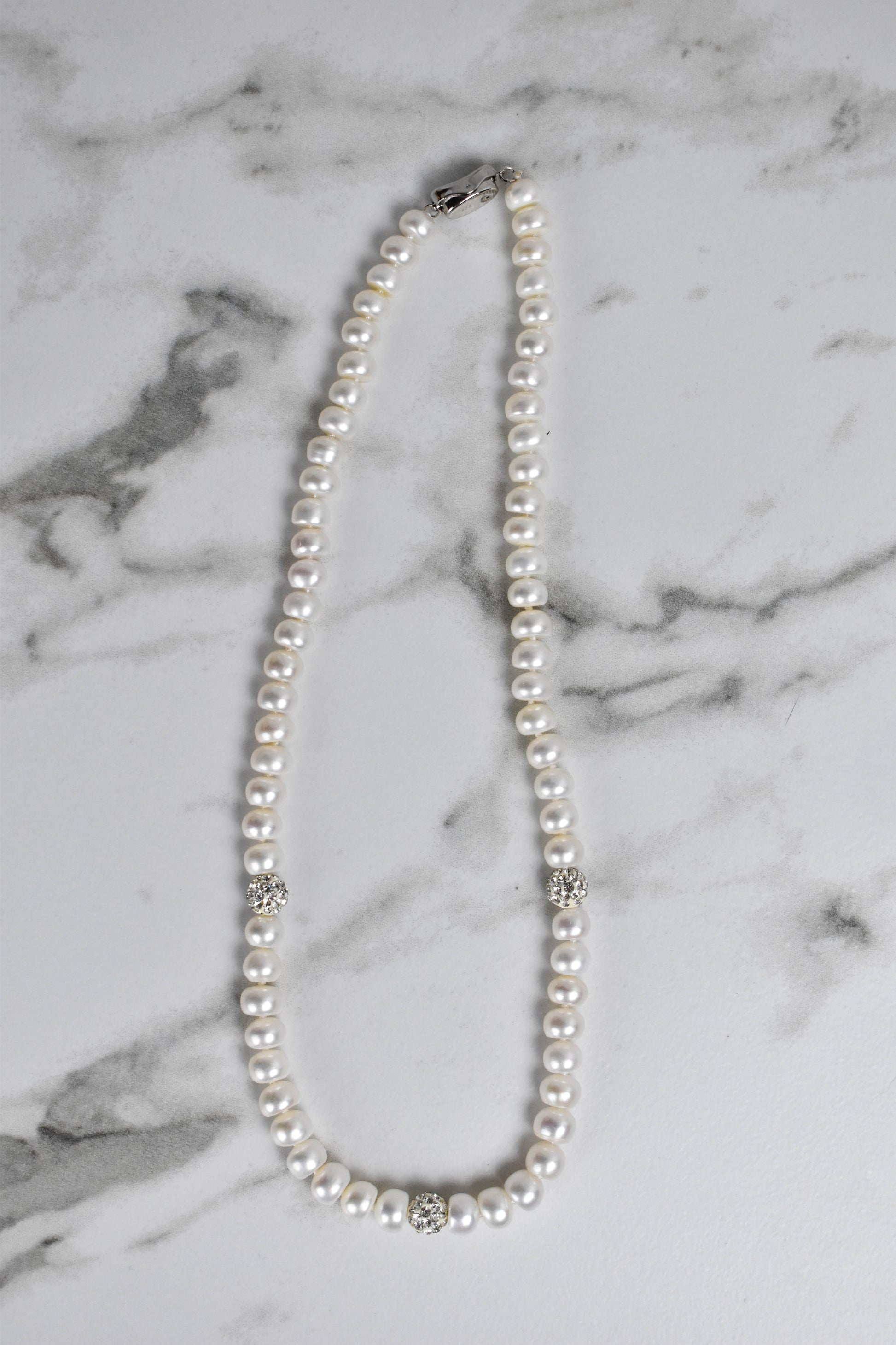 Real White Pearl and zircon Necklace
